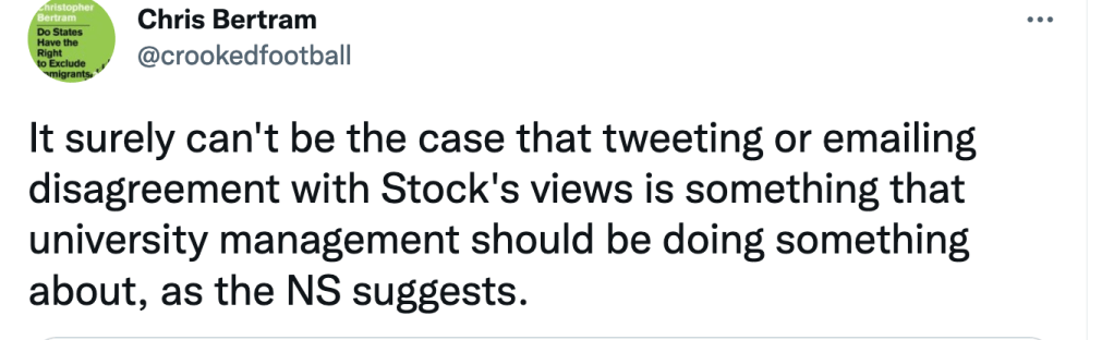 And also that in another public tweet, Chris Bertram said: